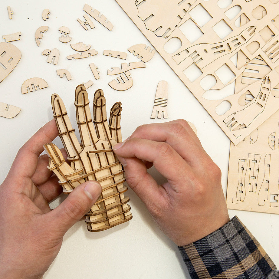 Create a Hand or Skull with Kikkerland's 3D Wooden Puzzles. Fit the laser cut pieces together – no tools or glue necessary – to create sculptures you'll be proud to display.