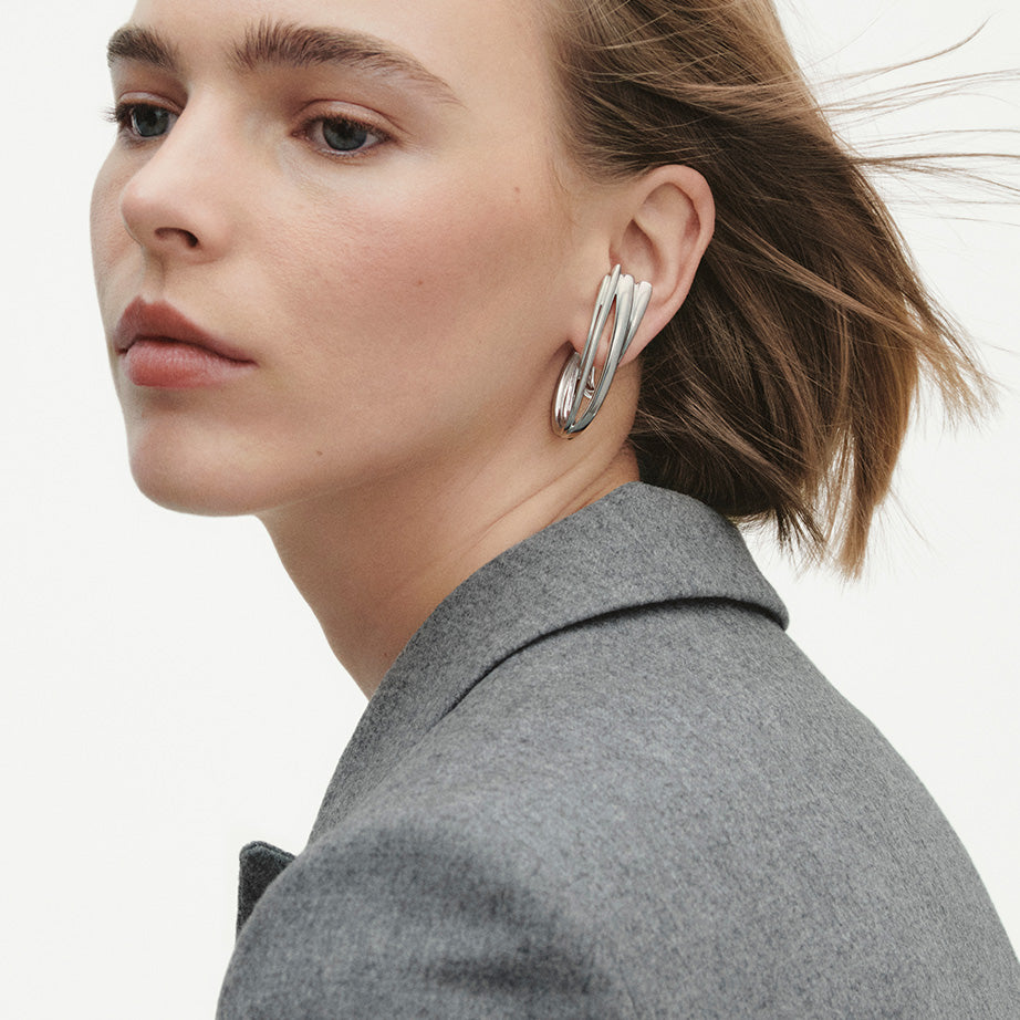 The Arc Collection from Georg Jensen features asymmetrical shapes and elegant organic curves. Reflecting their eco-friendly approach to jewellery making, it is their first jewellery collection made entirely of 100% recycled silver. By melting and refining previously mined silver to craft new designs, and with the same look, feel, and value of mined silver, these high quality pieces are both sophisticated and sustainable.