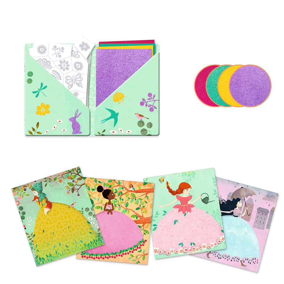 Make some magic with this creative activity from Djeco. Artistic Patch comes with four beautifully illustrated cards and decorative finishes. Stick on the glue patch then apply the decorative finish - velvet or foil - to make art suitable for framing.