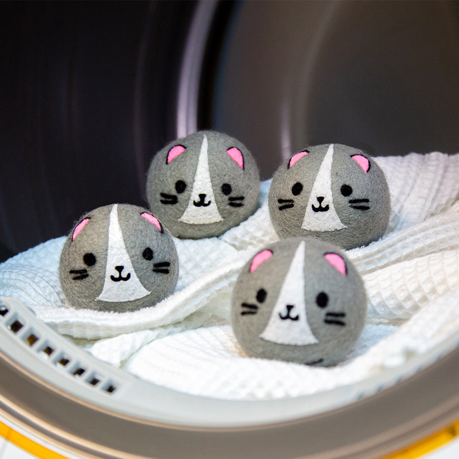 Pop these Cat Buddies from Kikkerland into the dryer to remove wrinkles, control static, fluff your laundry, and reduce drying time. Made of New Zealand wool, this set of four felines are eco-friendly. They make disposable dryer sheets a thing of the past, are reusable, and save on energy by dispersing the wet laundry in your dryer and allowing heat to circulate.