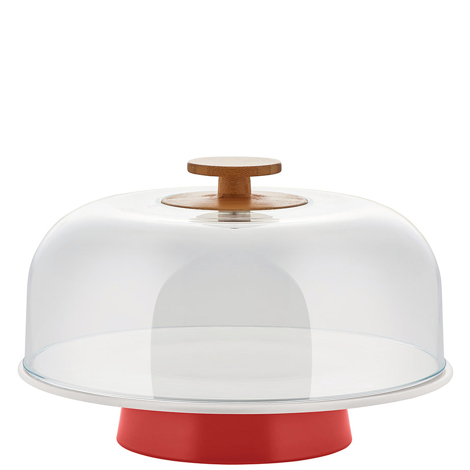 A stylish way to serve and store beautiful baked goods, the Mattina Cake Stand was designed by the trio at Big-Game Studio for Alessi. The white porcelain plate on a red or warm grey pedestal has a contoured edge for easy placement of the transparent lid. A bamboo knob completes the look.