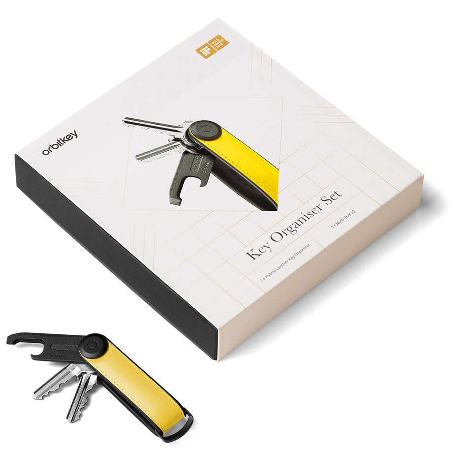 End key scratches, jingles, and holes in your pockets with the Orbitkey Key Organizer. This clever piece elegantly stores your keys in a tidy stack. Carry from two to seven standard keys in a slim profile and attach fobs to the D-ring. The Gift Set comes with a Key Organizer and a handy nine function Multi-Tool v2 in matte black.