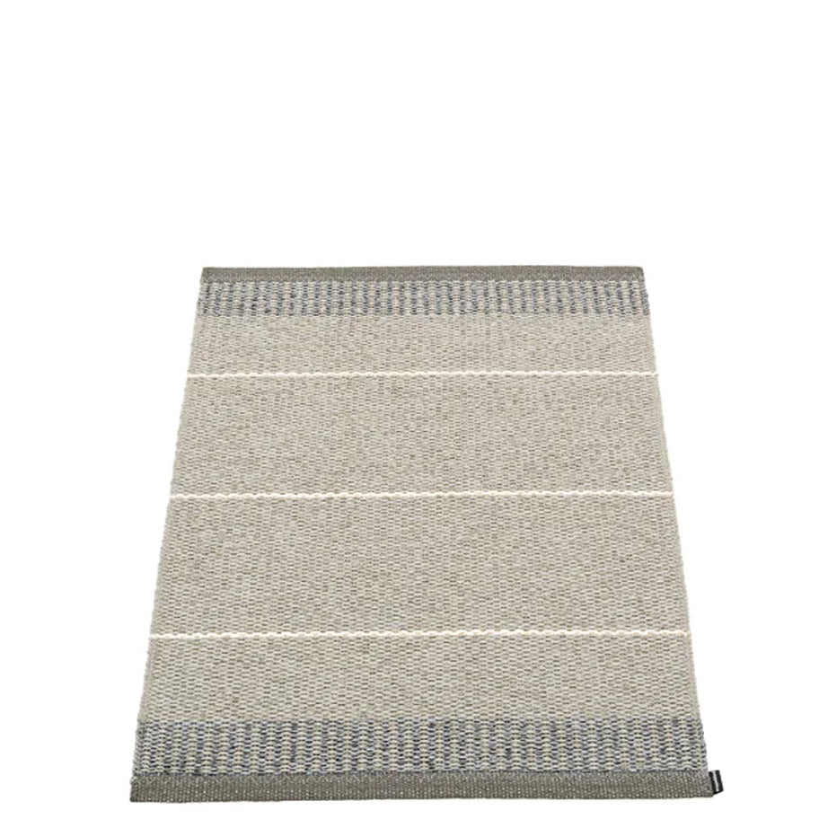Designed and made in Sweden, Pappelina Rugs are beautiful and sturdy for indoor or outdoor use. The Belle Rugs are made of certified phthalate free PVC ribbon, woven on traditional looms using wooden shuttles. The rugs are reversible, machine washable, and have reinforced and welded edges for added durability.