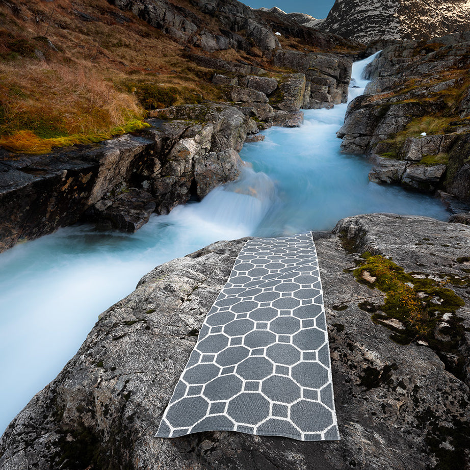 Designed and made in Sweden, Pappelina Rugs are beautiful and sturdy for indoor or outdoor use. The Rakel Rugs are made of certified phthalate free PVC ribbon, woven on traditional looms using wooden shuttles. The rugs are reversible, machine washable, and have reinforced and welded edges for added durability.