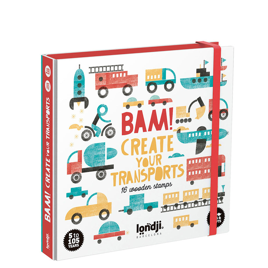 Kids can create endless designs with the Bam! Stamp Sets from Londji. Each set comes with 16 wood and rubber stamps, four ink pads, and a notebook. Use the shapes to build pictures of unique vehicles or imaginative animals.