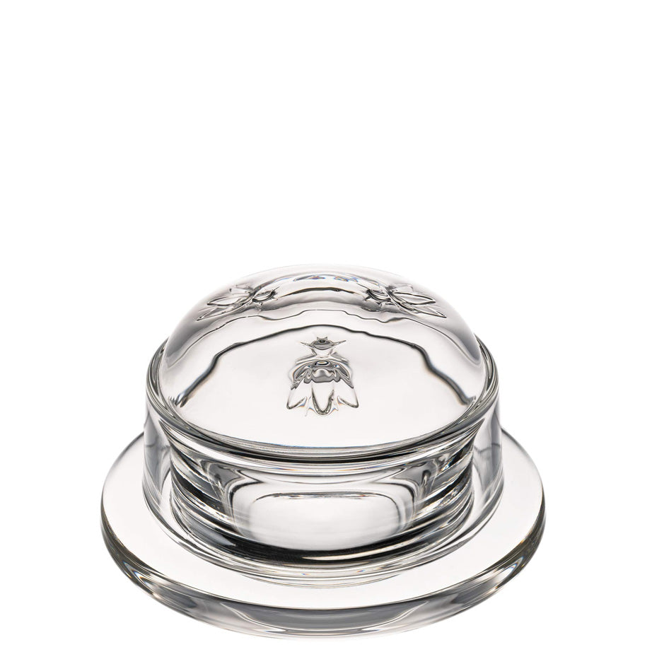 Imagine you're dining in the south of France with La Rocherè's Bee Collection Butter Dish at your table. Keep butter or jam fresh and spreadable with this chic dish, featuring their signature Provençal bee design. Made at the oldest glassware factory in France, La Rocherè continues to bring beautiful, functional glassware to your table.