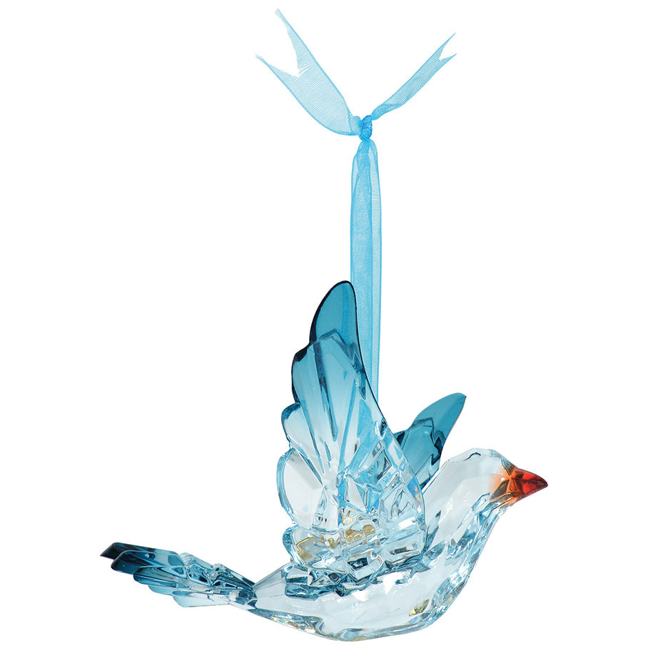 Decorate your tree with the beauty of birds in flight with these shimmering ornaments from Facets. Faceted to catch the light, each ornament hangs from a delicate red silk ribbon.