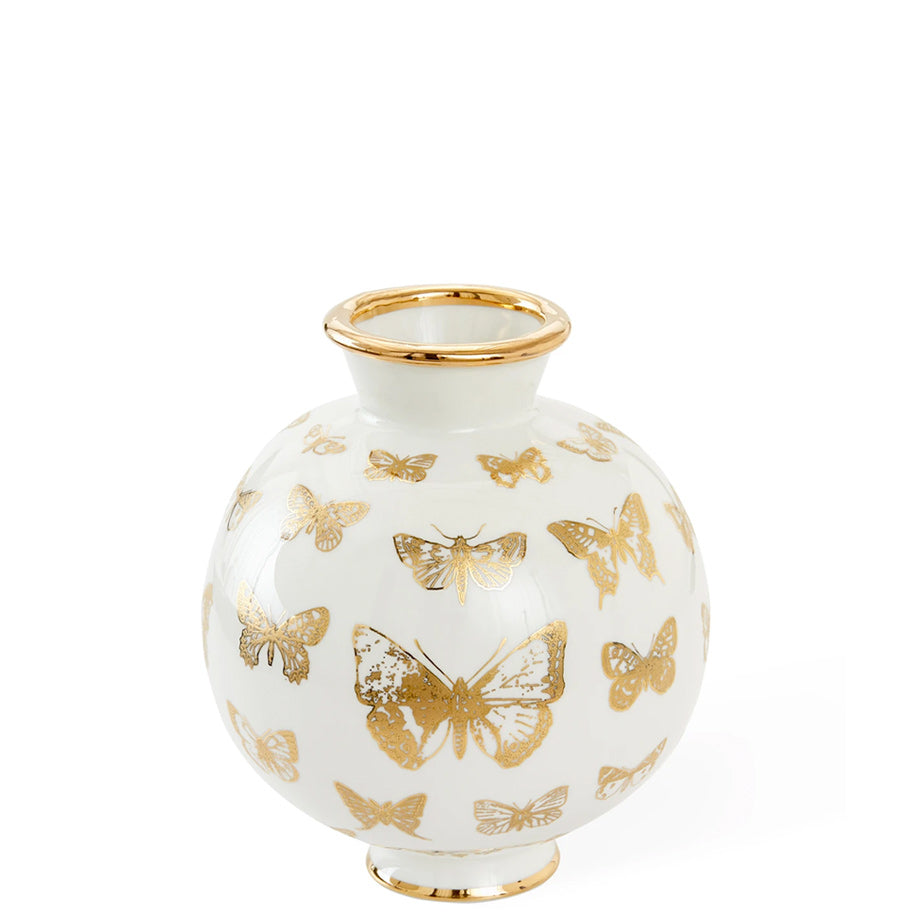 A sublime limited edition from Jonathan Adler, the Botanist Collection takes silhouettes from the natural world and renders them in glamorous gold. The lidded Ganja Urn and the round Butterfly Vase are crafted in high-fire porcelain and decorated with real gold accents. Their classic, elegant shapes will elevate any decor.