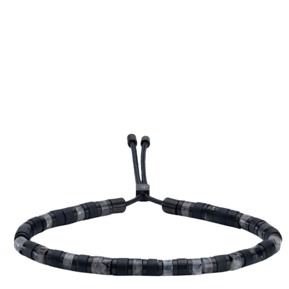 The Brontide Adjustable Bracelet from Pig & Hen men's jewellery collection features gemstones and a drawstring closure. Designed and hand-made in the Netherlands, the stones in each bracelet are based on colours that characterize their namesake cities. The Koyoto highlights Matt Amazon, Dragon Blood Jasper, and White Agate, emblematic of self-expression, creativity, and peace. Lapis Lazuli, symbolizing wisdom, is featured in the Okinawa Bracelet, and stability and protection is represented by Black Labradorite and Black Agate in the Sapporo Bracelet.