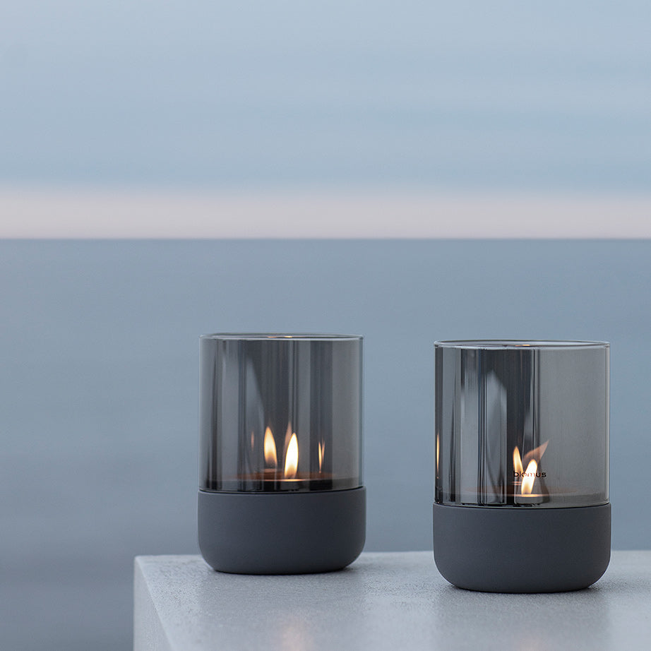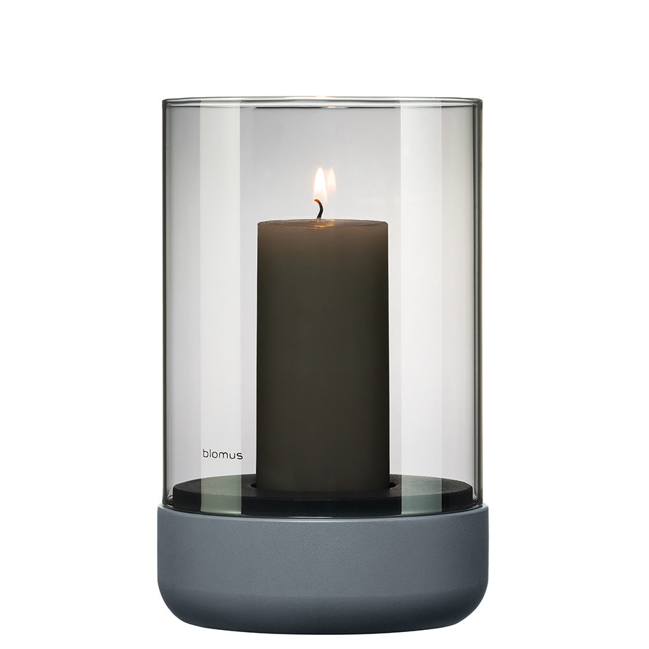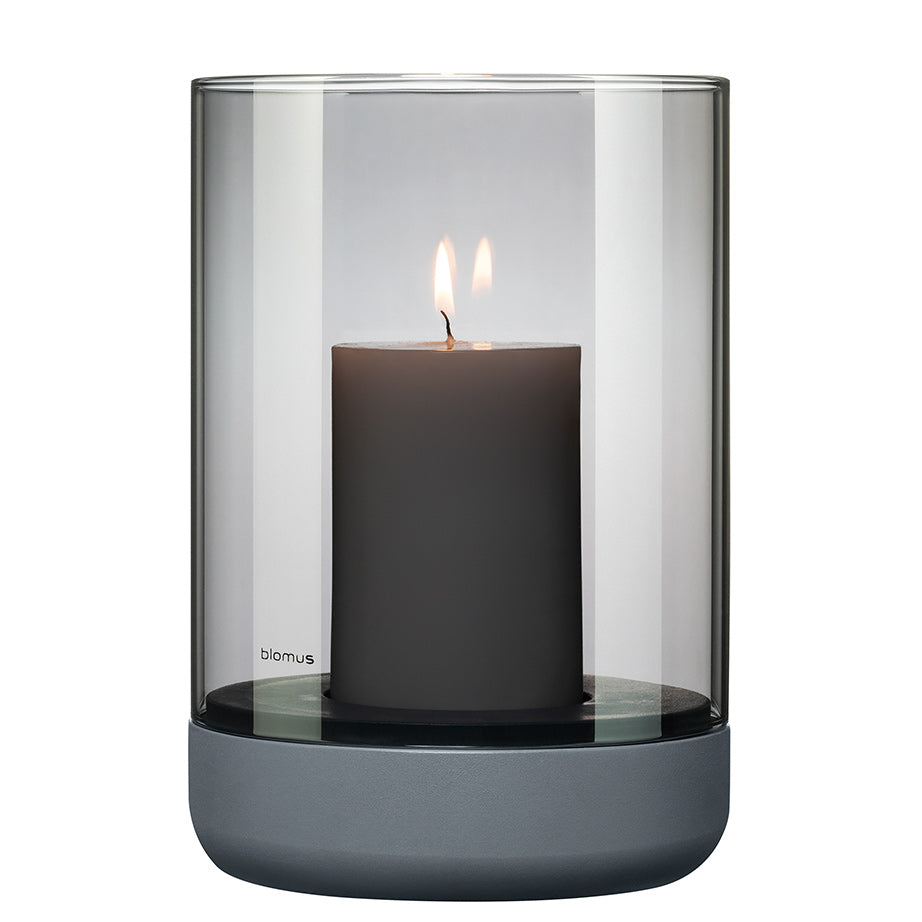 A sleek and contemporary candleholder, the Calma Hurricane Lantern from Blomus adds modern ambience to your outdoor or indoor decor. Calma has a steel grey concrete base paired with a smoked glass hurricane to protect the flame from breezes. The mirrored finish of the glass enhances the flickering of the candle for a captivating effect.