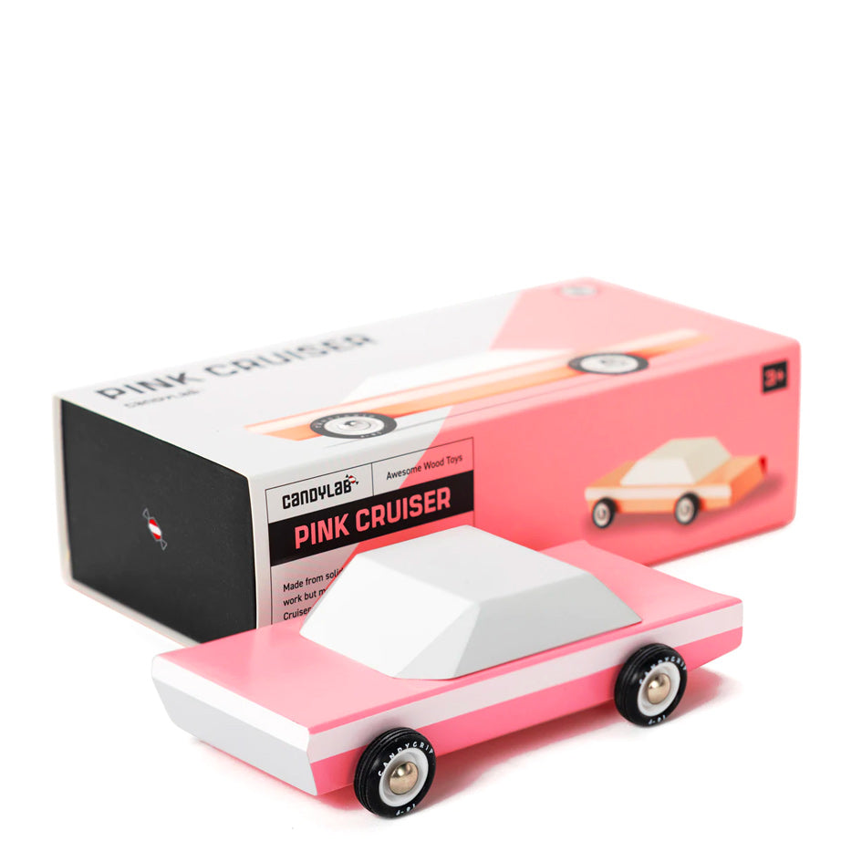 On the road to the end of Route 66, Candylab's Pink Cruiser paired with a matching Pink Santa Monica beach tower is all about California dreaming. The tower is easy to assemble and is sized to fit Candylab cars. Like all Candycars, the Pink Sedan is made of solid beech wood, with water-based paint, clear urethane coat, white ABS plastic rims, and rubber tires.