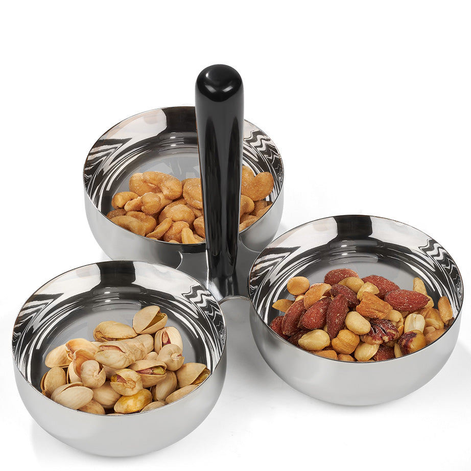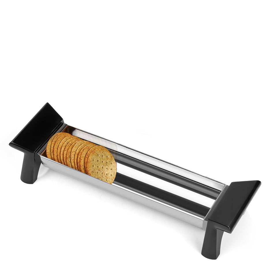 The Circa Collection from Nambé is a timeless tribute to Mid-Century Modern style, blending lustrous stainless steel with sleek black lacquered resin accents. With a Divided Nut Bowl, Ice Bucket with Tongs, Cracker Tray, and large Rectangular Serving Tray, this is a sophisticated collection for entertaining.