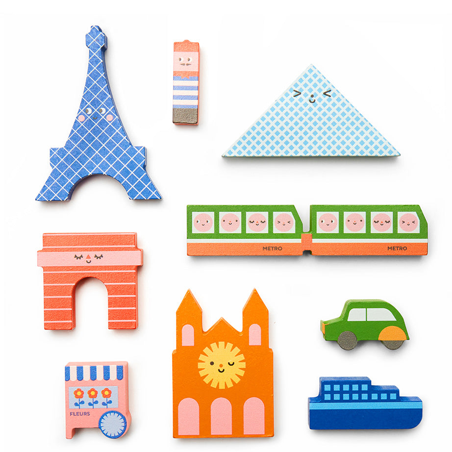 Armchair travel to the world's great cities with Kikkerland's City in My Pocket. The iconic buildings and landmarks of London, Paris, or New York City are represented in charming wood pieces, perfect for hours of creative play.