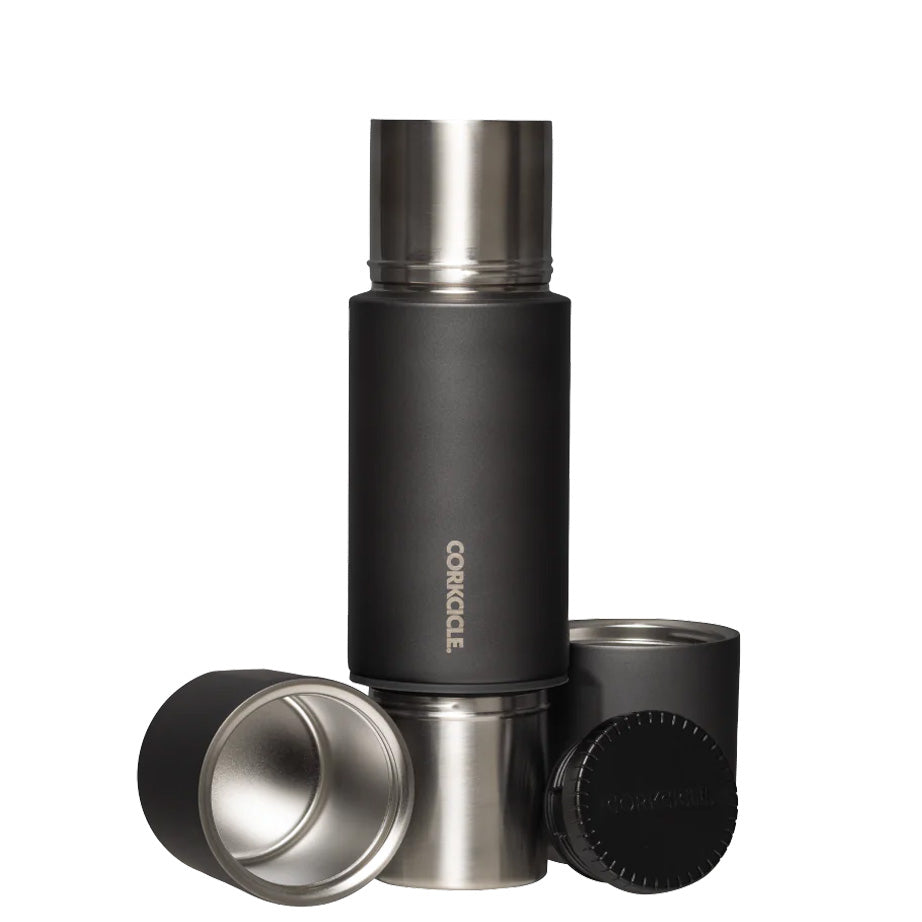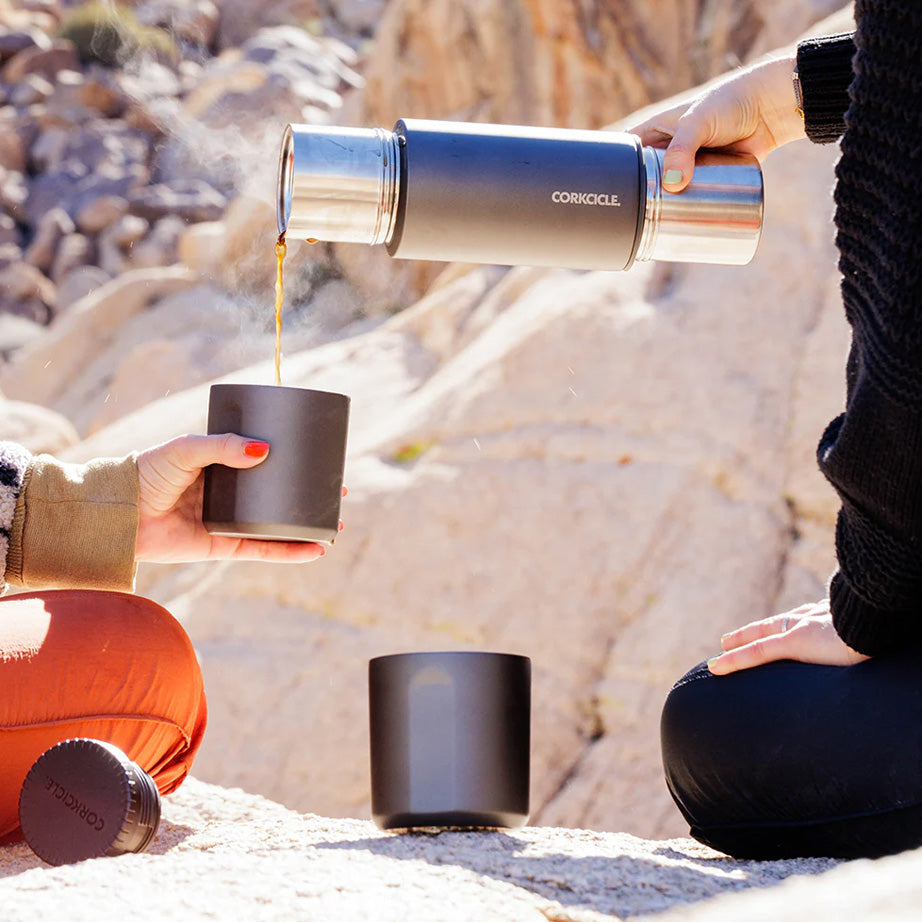 The Corkcicle Traveler lets you transport and enjoy up to 36 ounces of your favourite hot or cold drink. With Corkcicle's signature triple insulation, a leak-proof pour-though lid, and two lid covers that double as 10 ounce cups, it's ideal for on-the-go adventures and celebrations.