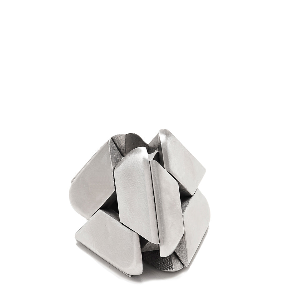 - Tetra Puzzle: a beautiful and captivating mechanical puzzle composed of four identical pieces. It activates your spatial reasoning and manual dexterity skills in a way that's immersive and engaging. The components fit together to form a pyramid shape. Available in Brushed Stainless Steel or Vapor Black (PVD coated stainless steel)