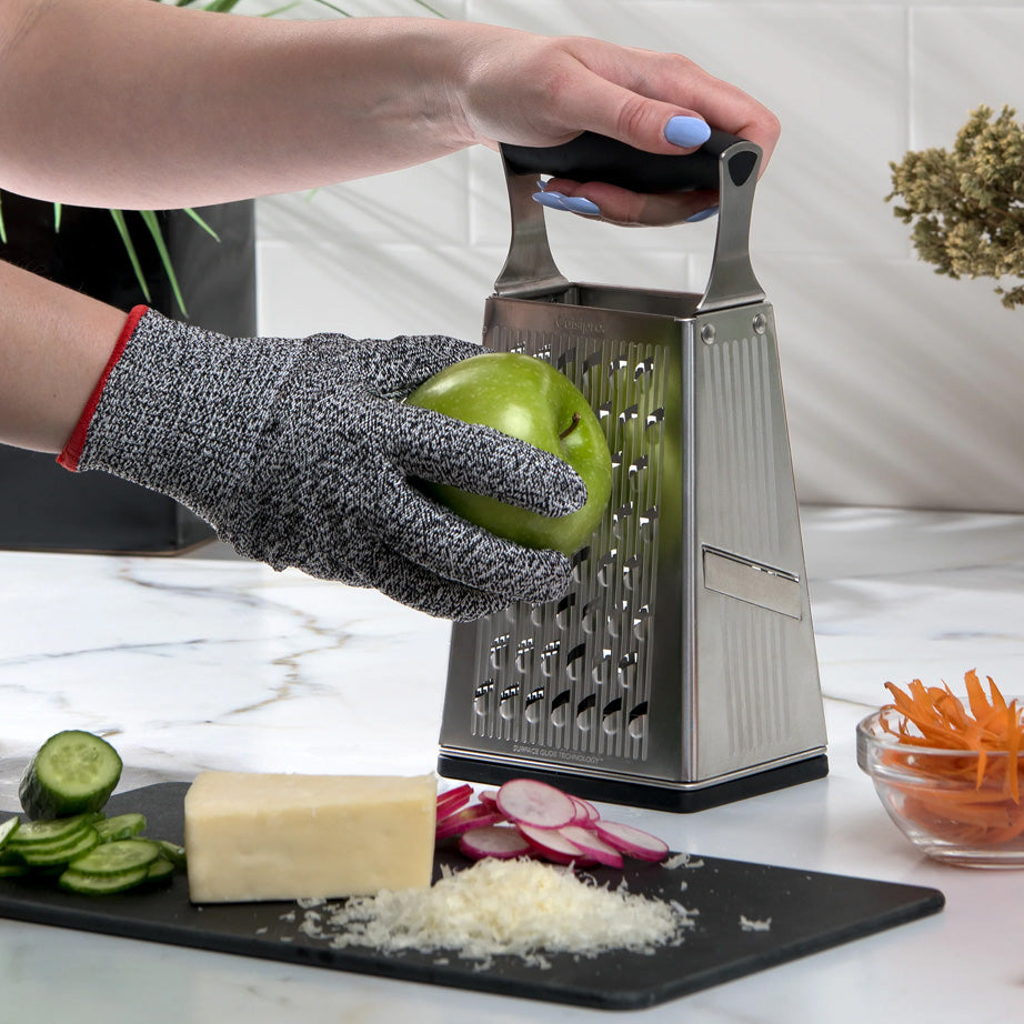 Cut and grate with confidence wearing Cuisipro's Cut Resistant Glove. Made of a strong fabric reinforced to keep your hand safe, it's also comfortable, breathable, and easy to clean. Ideal for cutting, deboning, slicing, and grating in the kitchen.