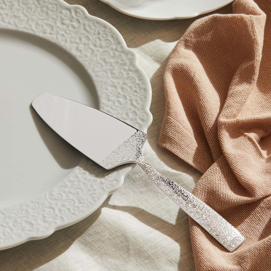 The Dressed Cake Server and Ladle are part of the Dressed Collection designed by Marcel Wanders for Alessi. These 18/10 stainless steel servers are polished on one side and embellished with the beautiful relief pattern of the Dressed line on the reverse.