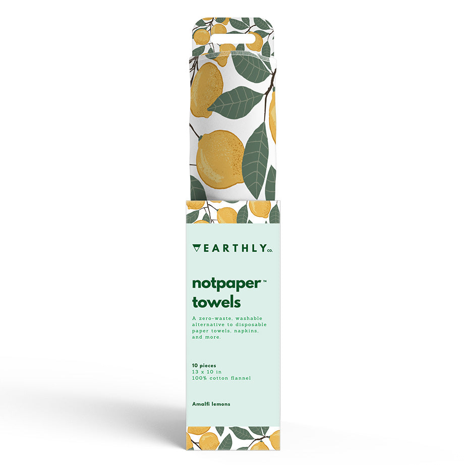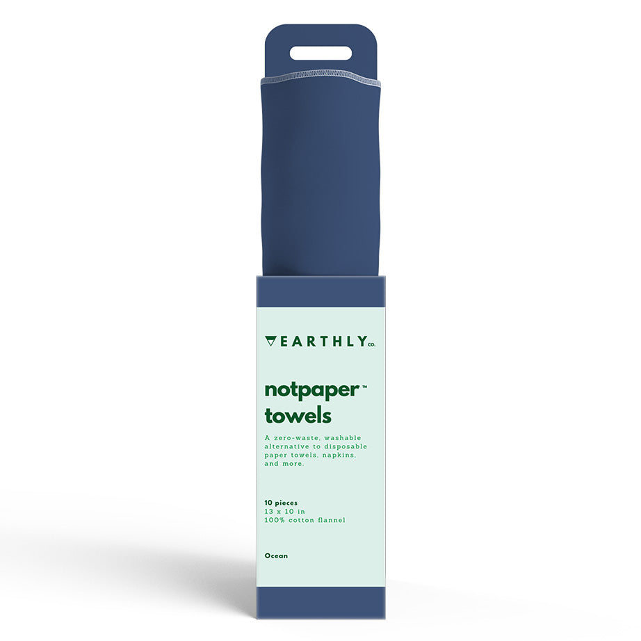 Earthly Co. Notpaper Towels are an eco-friendly, zero-waste alternative to disposable paper towels. Washable, absorbent, and soft, they let you say goodbye to paper towel waste while saving the environment. Made of 100% cotton flannel, they are highly absorbent, fast drying, machine washable, and long lasting. Cost effective, one roll can replace more than eighty rolls of paper towels. Notpaper Towels are the perfect multi-tasker and can be used to clean any surface, as cloth napkins, or as bathroom hand towels.