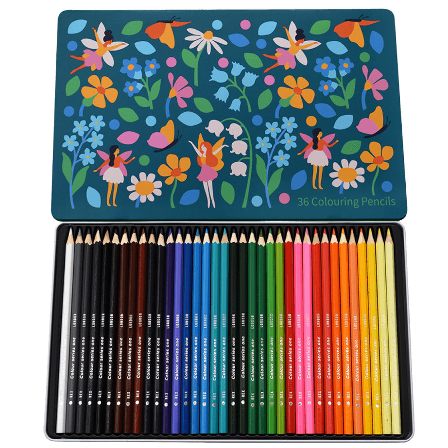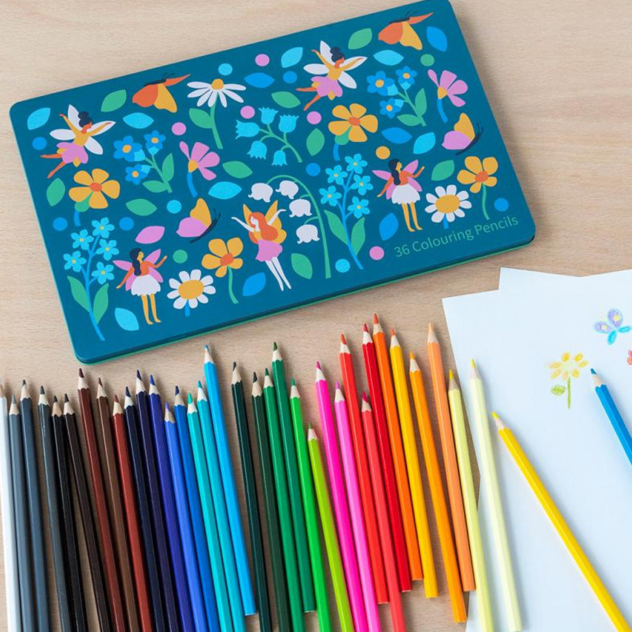 A rainbow of hues for young sketchers, Fairies in the Garden Colouring Pencils are perfect for budding artists. Thirty-six coloured pencils come packaged in a tin decorated with flowers and fairies from Rex London's Fairies in the Garden Collection.