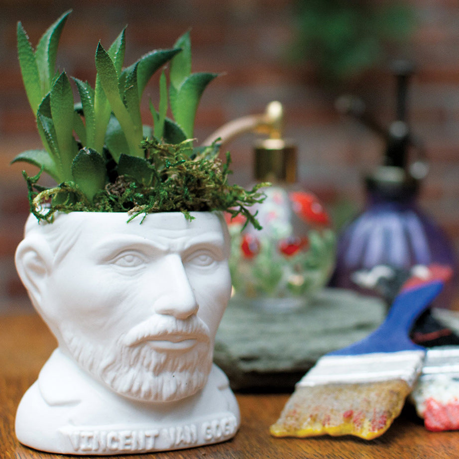 Fertile Minds make ideal planters for small plants and succulents. These cheeky little ceramic pots from Unemployed Philosophers Guild celebrate some of the great thinkers of our times.