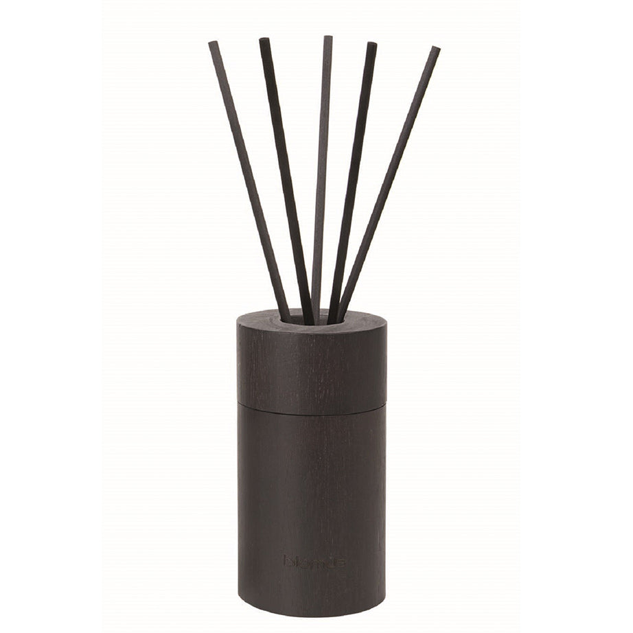 Flavo Room Fragrance Sets from Blomus are three luxurious home fragrances in refillable diffusers. A glass bottle holding the fragrance sits inside a dark wood container. The fragrance intensity is adjustable - the more reed sticks used, the stronger the scent experience. The aromatic notes come from the natural world, subtly and lightly perfuming any room. Refill and replace the reeds when necessary with any of the three fragrance refill sets.
