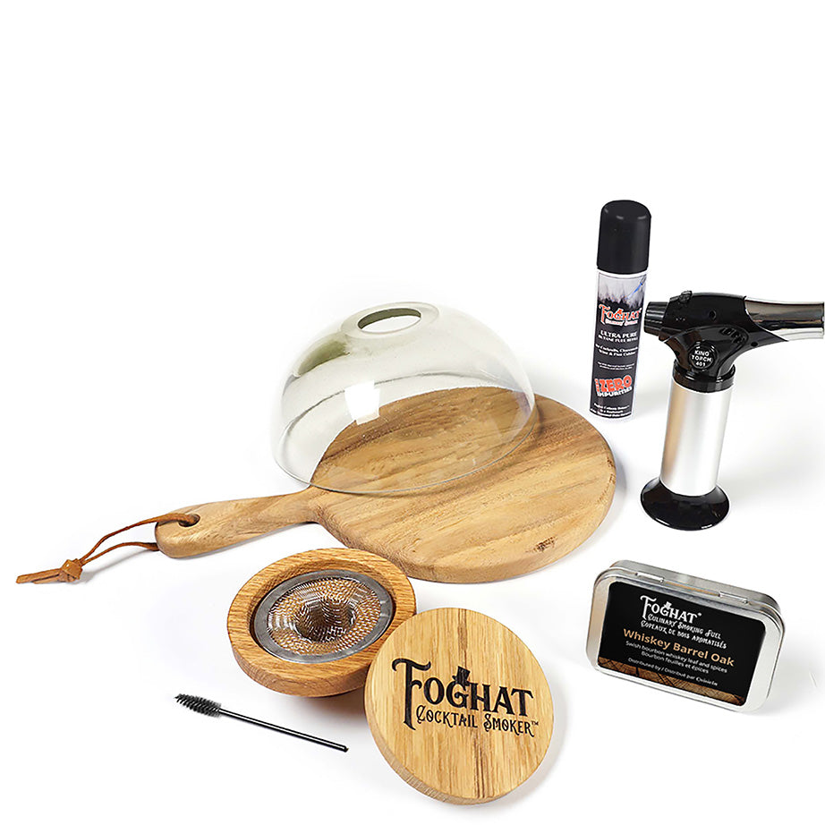 - Cloche Set: Add culinary smoke to your charcuterie. Set comes with oak board and cloche dome, Foghat Smoker, Whiskey Barrel Oak Culinary Smoking Fuel, ember guard, cleaning brush, culinary torch, Ultra Pure Culinary Butane