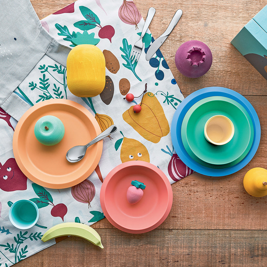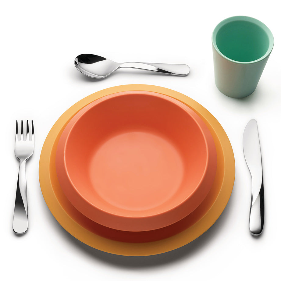 Eye-catching colours and easy to use shapes make the Giro Kids Collection of dinnerware and cutlery, designed by Ben van Berkel/UNStudio for Alessi, appealing for children and parents. Children will enjoy using the tableware set of shatterproof plate, bowl, and cup. Co-ordinate the tableware with the three-piece stainless steel cutlery set, which takes the architectural twist, a key feature in many of Berkel's projects, and scales it down for small hands.