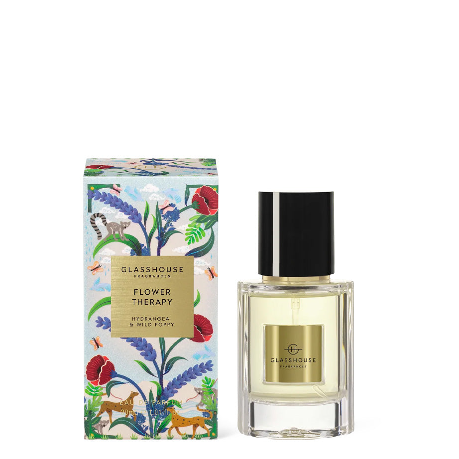 Wrap your self up in the heady fragrance of a flower shop with a Flower Therapy from Glasshouse Fragrances's Summer Refresh Collection. Light the double-wick candle and perfume your room with a medley of fresh cut blooms like hydrangea and wild poppy and the herbaceous scents of verbena and blackcurrant. The triple-scented candle is made from the highest quality soy blend wax and lead-free cotton wicks for a pure and intensely fragrant burn. Beautifully packaged for gifting, this limited edition candle comes in decorated glass vessel. The Eau de Parfum captures this unforgettable classic and graceful scent.