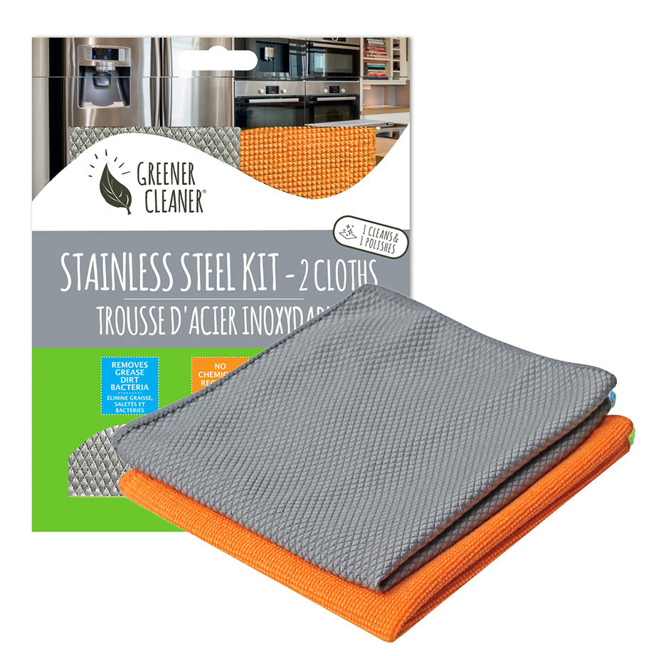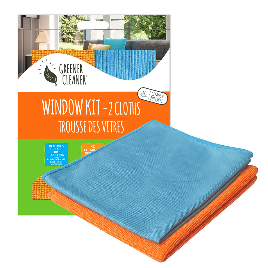 Green Cleaner's innovative clothes clean your home safely with no chemicals. Using only water to tackle tough messes, they are ideal for allergy and asthma sufferers. They remove dirt, grease, and bacteria on any surface. The Home Cleaning Kit comes with four clothes - an All-Purpose Cloth, a Window & Glass Cloth, a Stainless Steel Cloth, and a Shower & Bathroom Cloth. The Bathroom & Shower, Stainless Steel, Kitchen, and Window Kits come with two clothes, one for cleaning and one for polishing. All cloths are machine washable.
