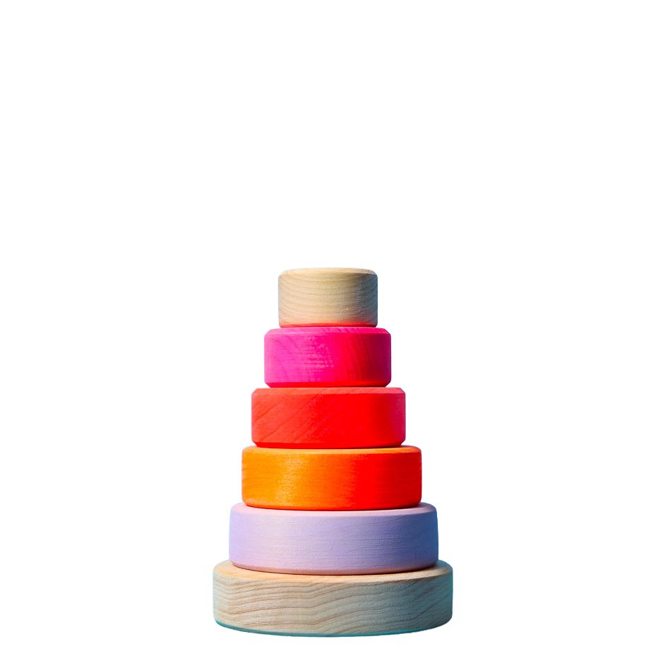 Responsibly made by a family-owned company in Germany from wood sourced from sustainably managed European forests, Grimm's Toys that are meant to last a lifetime. Their Conical Towers promote children's fine motor skills, logical and spatial thinking, and imaginative play. They are as beautiful as they are fun to play with. Each tower is finished with non-toxic water based stains and is safe for young children ages one year and up.