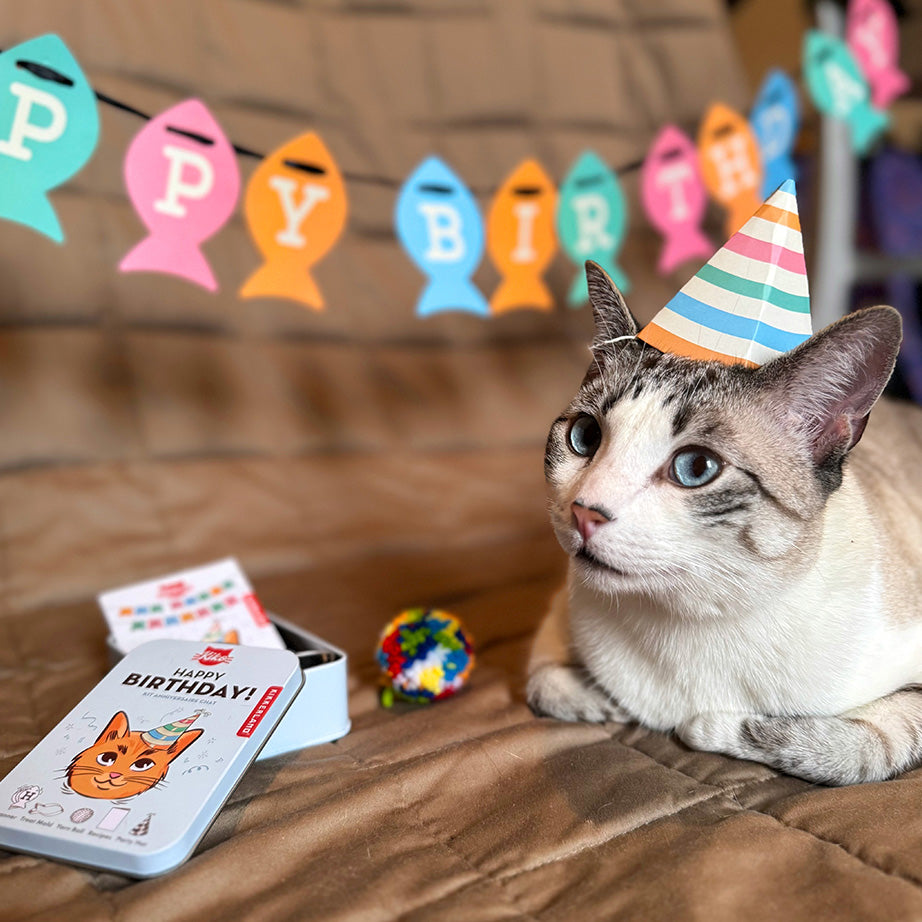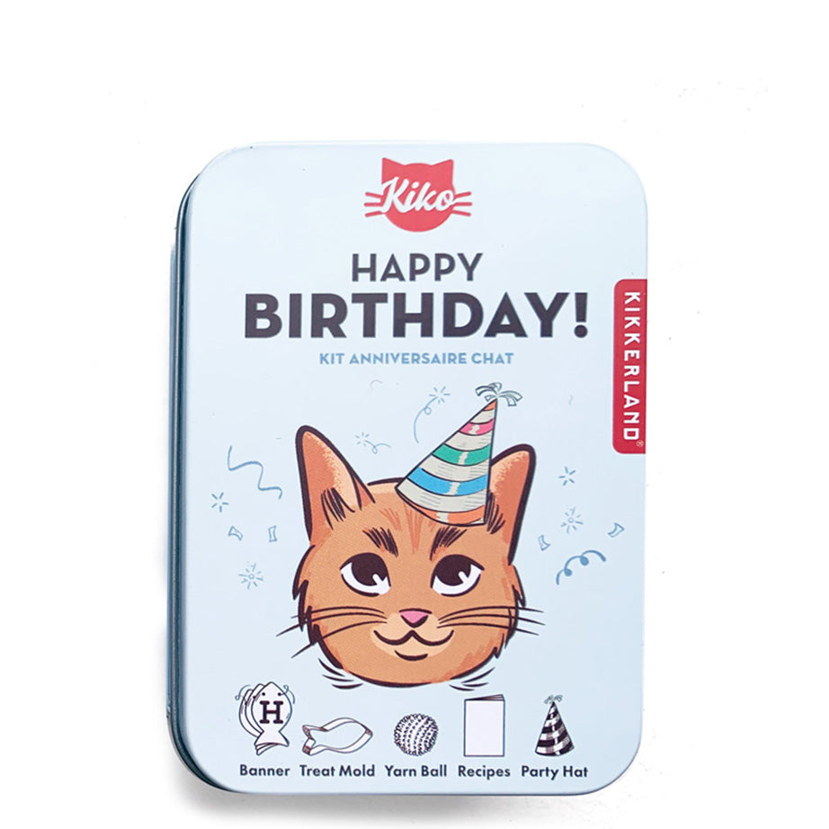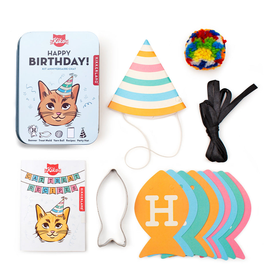 The Happy Birthday! Cat Birthday Kit from Kikkerland's Kiko Collection is packed with fun-filled ways to wish your kitty a special day. The little tin comes with a cat teat recipe book, fish-shaped cookie cutter, "Happy Birthday" banner, a yarn ball, and a party hat for the guest of honour!