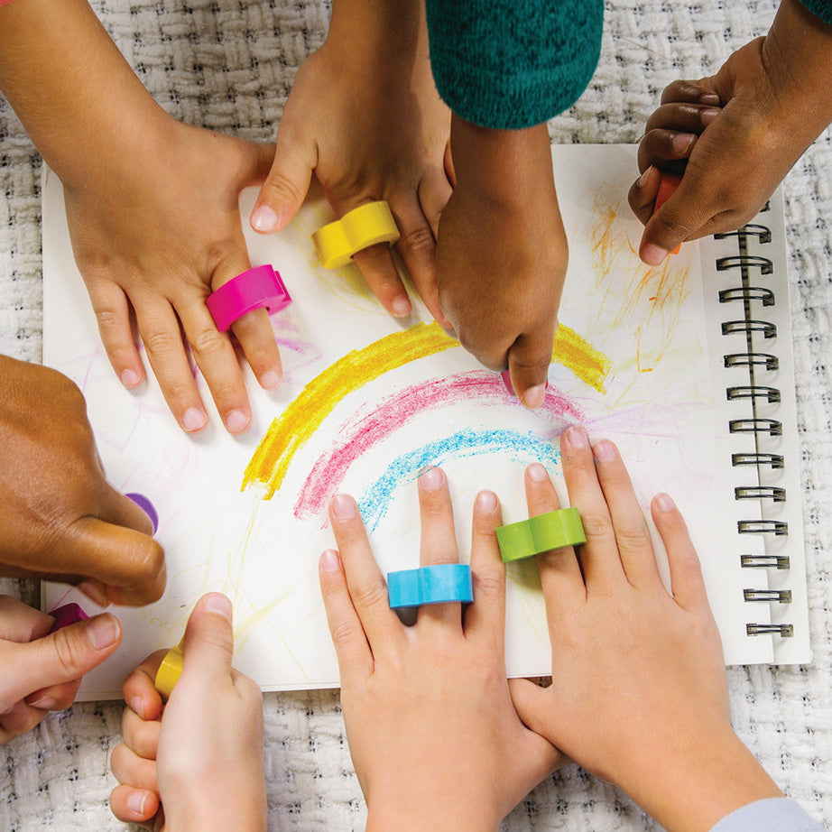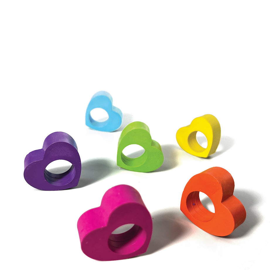 Wear them and draw with them - six brightly coloured Heart Ring Crayons from Ooly are loads of fun. Be ready when inspiration strikes with this wearable writing implement.