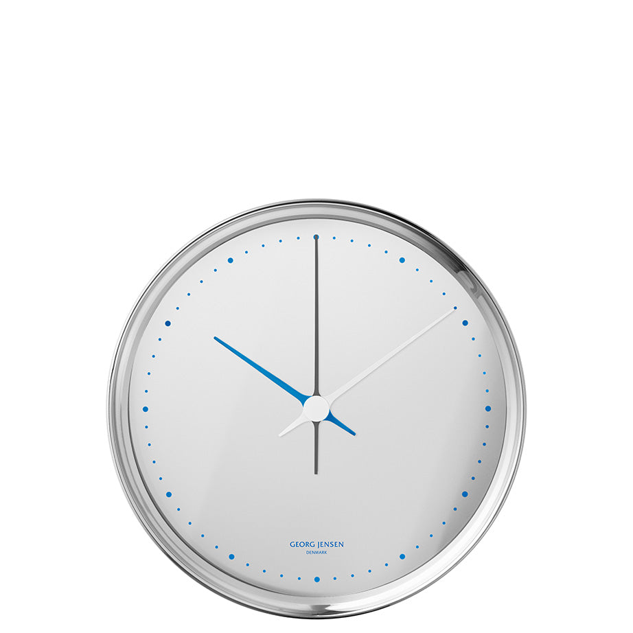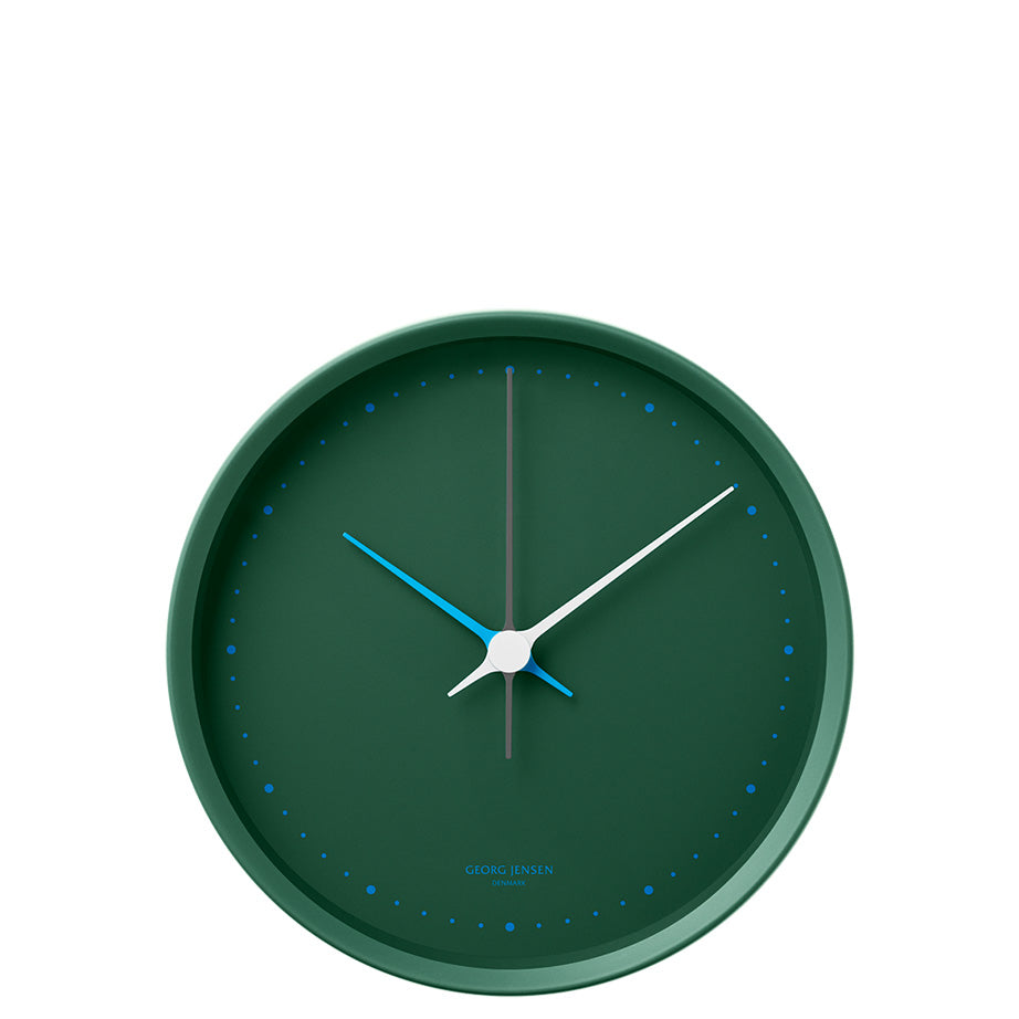 The iconic HK Wall Clock, first introduced in 1978, has been reimagined in a palette of hues inspired by the streets of Denmark. Designed for Georg Jensen by Henning Koppel, one of the leaders of Danish post-war design, dots replace the numbers that are traditionally used on a clock face. Elongated hands sweep across the clock silently. The HK Clock is an example of the synthesis of timeless simplicity and quality that has been a hallmark of Georg Jensen since its beginnings.