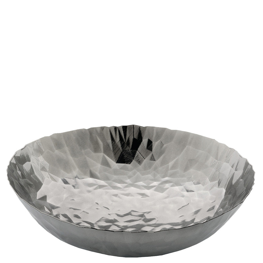 With the Joy Collection, Alessi's craftsmanship in production takes Claudia Raimondo's design and turns a sheet of steel into form and decoration. The fascinating play of reflections in the facetted surface of the Joy n.11 Round Bowl and Joy n.1 Centrepiece is created through a sophisticated manufacturing process. With embossed sides and an uneven, jagged rim the irregular texture embellishes the object, which is reminiscent of the surfaces crafted by master silversmiths.