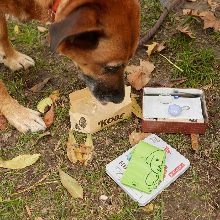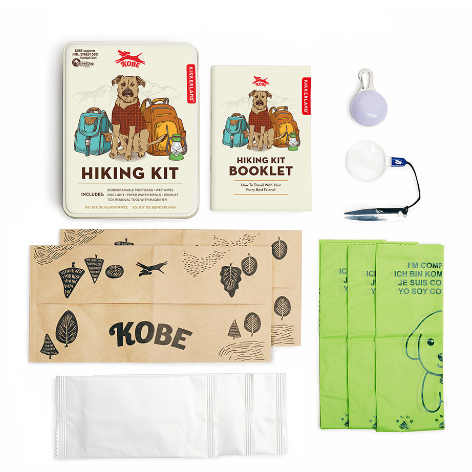 - Hiking Kit: Comes with 3 biodegradable poop bags, 3 wet wipes, 2 paper water bowls, a dog light, a tick remover with magnifier, and a booklet with hints on how to travel with your furry friend