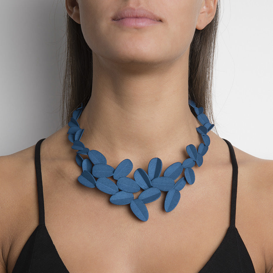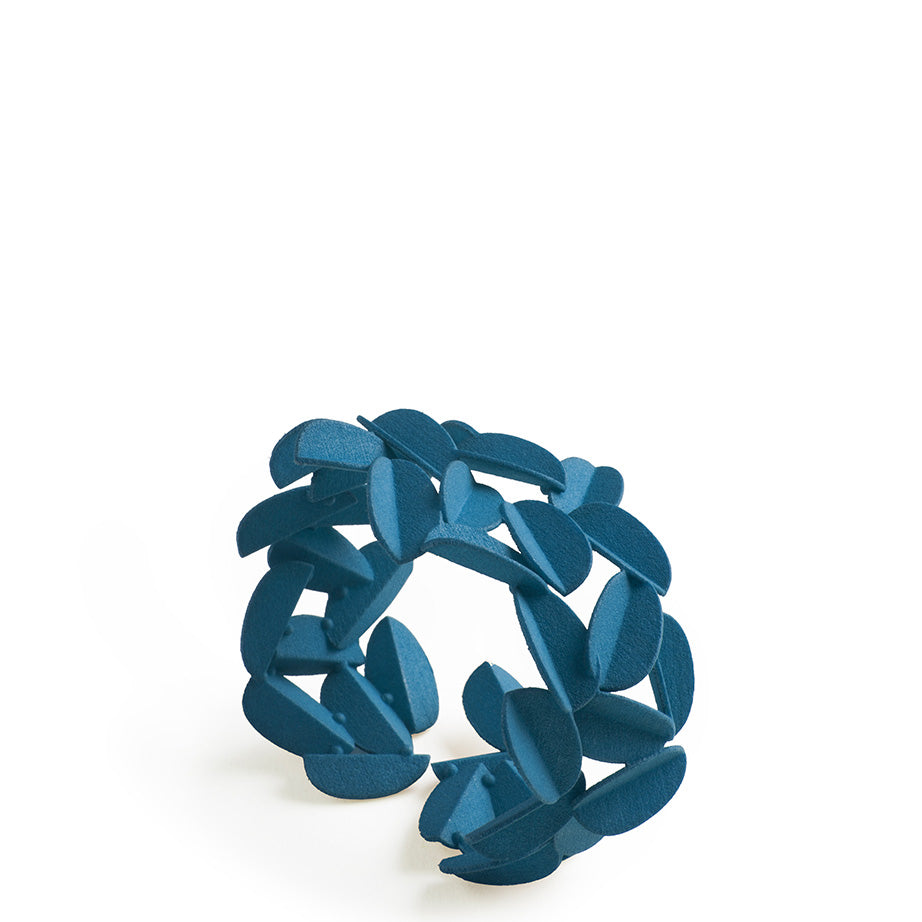 The Leaves Collection is cutting-edge jewellery from Maison 203, an Italian company founded by designers Orlando Fernandez Flores and Lucia De Conti. The brand is dedicated to the design and production of contemporary jewellery made with 3D printing technology, the process of creating three-dimensional objects starting from a digital file. Designed by Giorgia Zanellato, pieces from this collection start with the simple form of a leaf composed in captivating combinations. This 3D printed nylon jewellery collection is lightweight but makes a bold statement.