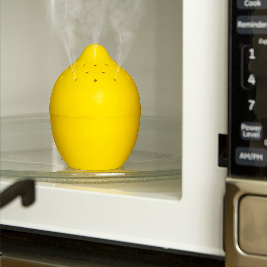 Harness the power of vinegar and water and steam clean your microwave with the lemon-shaped Lemon Microwave Cleaner from Kikkerland. A natural way to make your microwave sparkling clean and fresh.