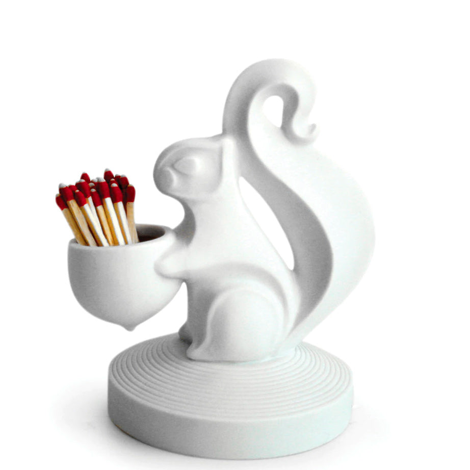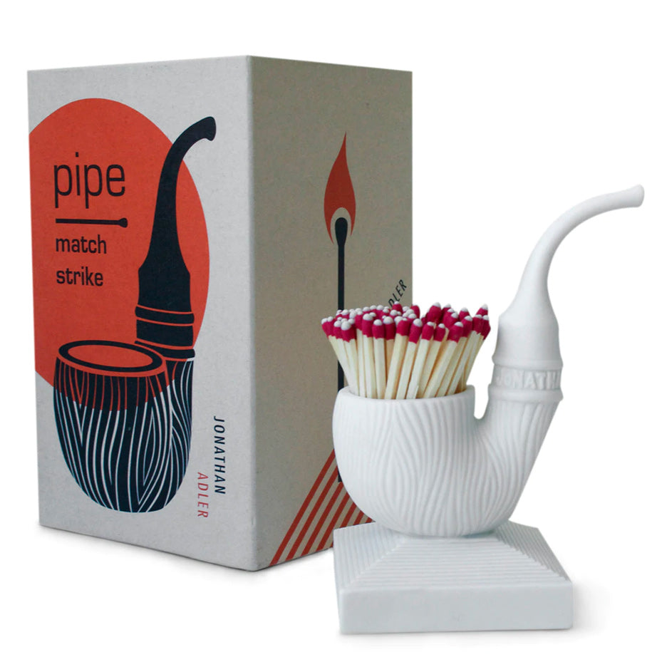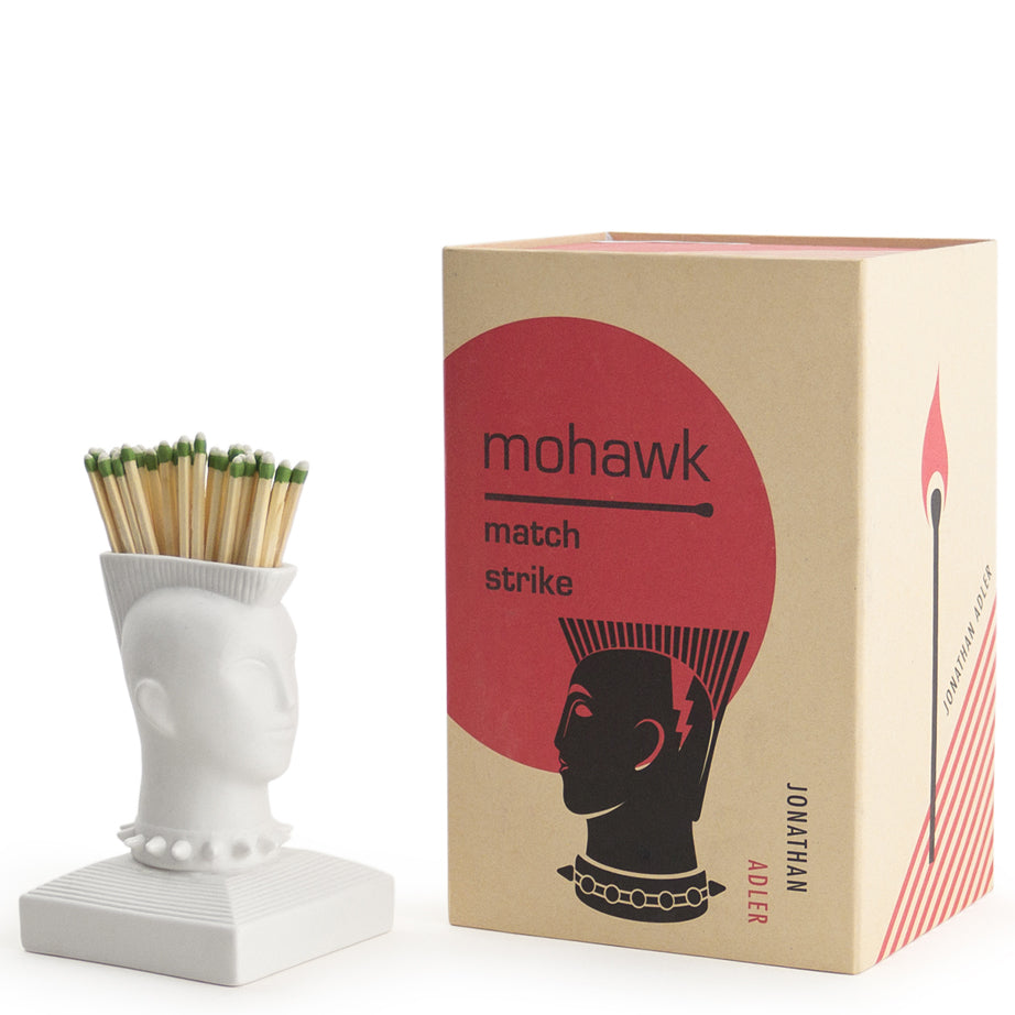 The white porcelain bisque Match Strikes from Jonathan Adler are tabletop sculptures with a function. Featuring a frictional base that ignites strike-anywhere matches, these pieces are both fire and conversation starters.