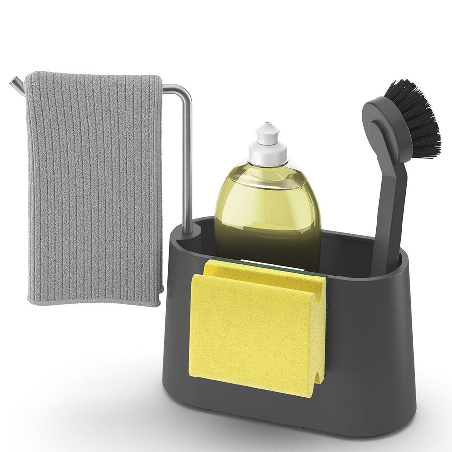 Your sink will stay tidy and clean with the Mavos Sink Organizer from ZACK. This cleverly designed piece has a place to hold your sponge, brush, and liquid soap, and a 360° stainless steel can be used for drying cloths. The long handled brush - sold separately - is angled to clean hard to reach places.