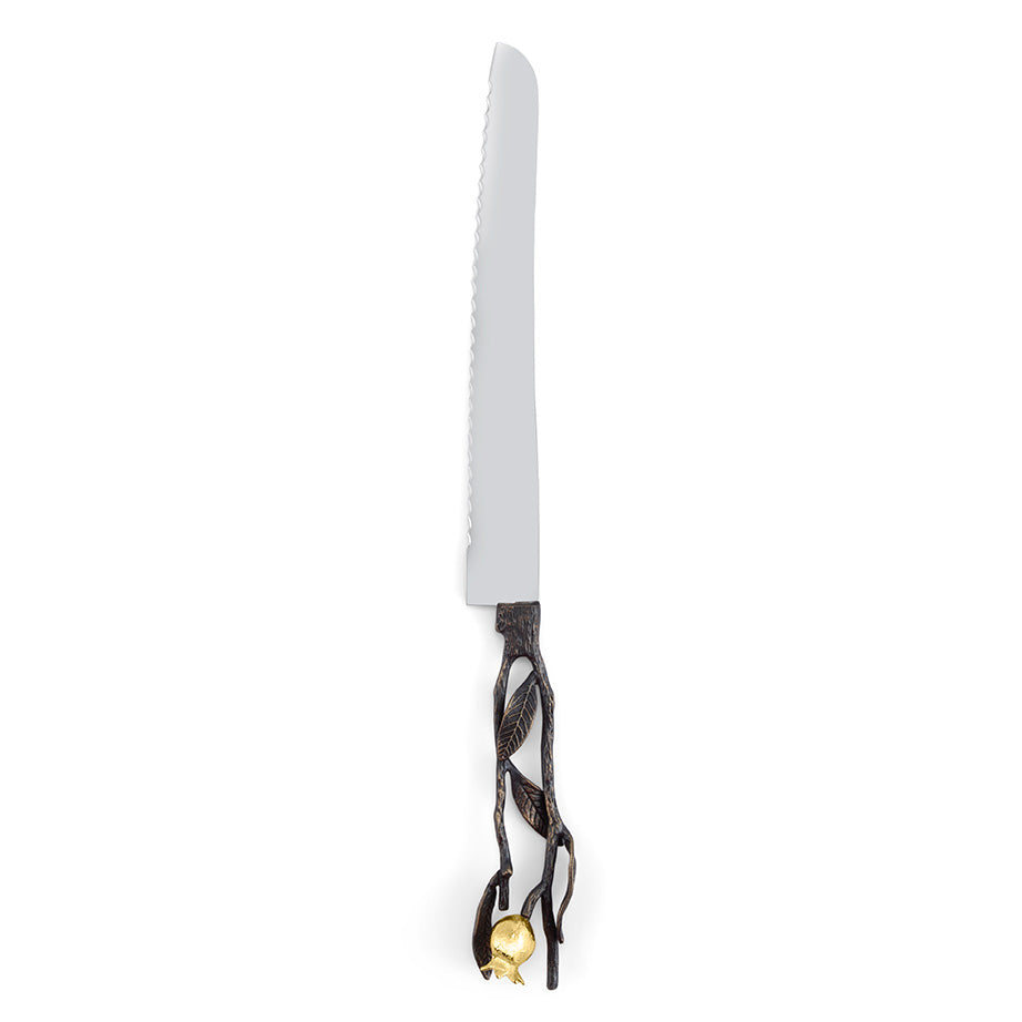 - Bread Knife: Serrated stainless steel blade, oxidized brass, and 24K gold plate / 13.5" L