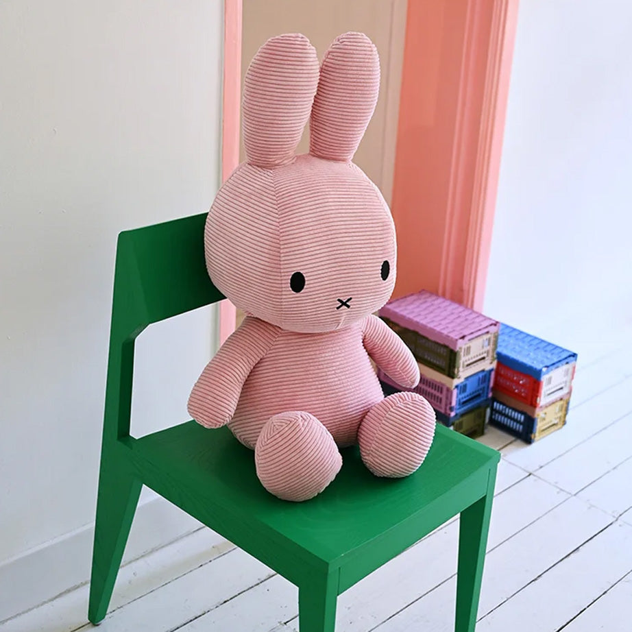 A large pal for your child, Miffy Bunny was created in 1955 by the Dutch artist Dick Bruna for a beloved series of books. This timeless and charming character is handmade using the highest quality materials by Bon Ton Toys. In soft corduroy, Miffy is the ideal addition to any nursery. The ECO Miffy is made with at least 90% recycled materials inside and out.