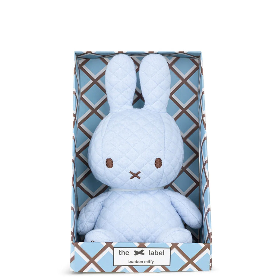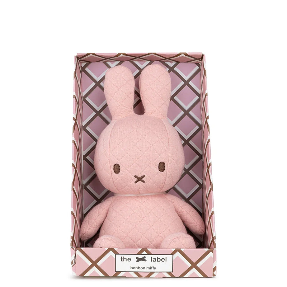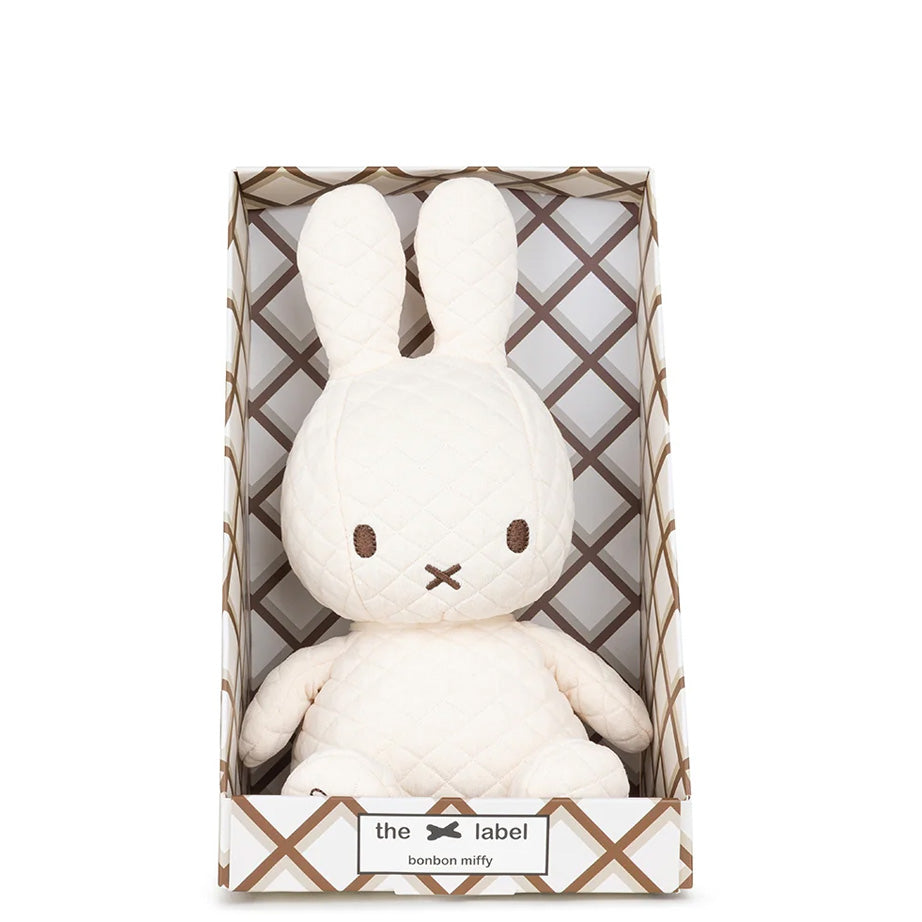 A quilted Bonbon Miffy from Bon Ton Toys is packaged to be a show stopping gift at any baby shower or birthday. Created in 1955 by the Dutch artist Dick Bruna for a beloved series of books, Miffy Bunny still charms. This timeless character is handmade using the highest quality materials and is super soft. Bonbon Miffy is the ideal addition to any nursery.
