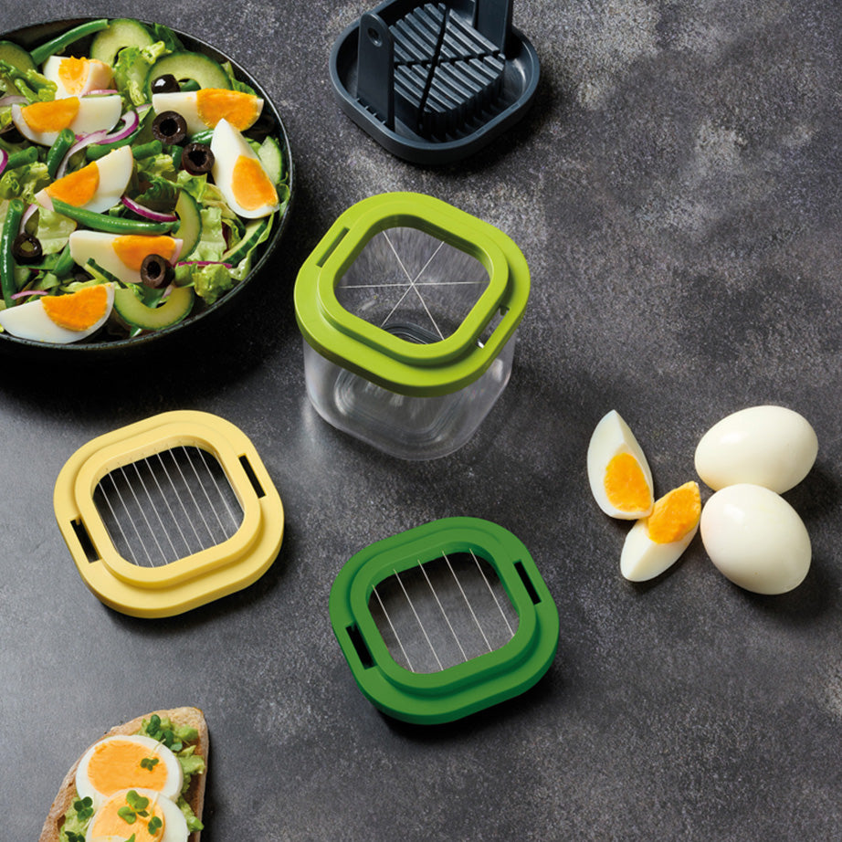 For precise slices of everything from eggs to mushrooms, the Multi-Prep Mini-Food Chopper from Joseph Joseph is the tool that you need. Designed to that take up minimal space in your kitchen, this stacking tool comes with three stainless steel blades - a wedge cutter, thick slicer, and thin slicer. It has a lid that features a grip for safe handling and a container with a non-slip base to collect the food as you go.