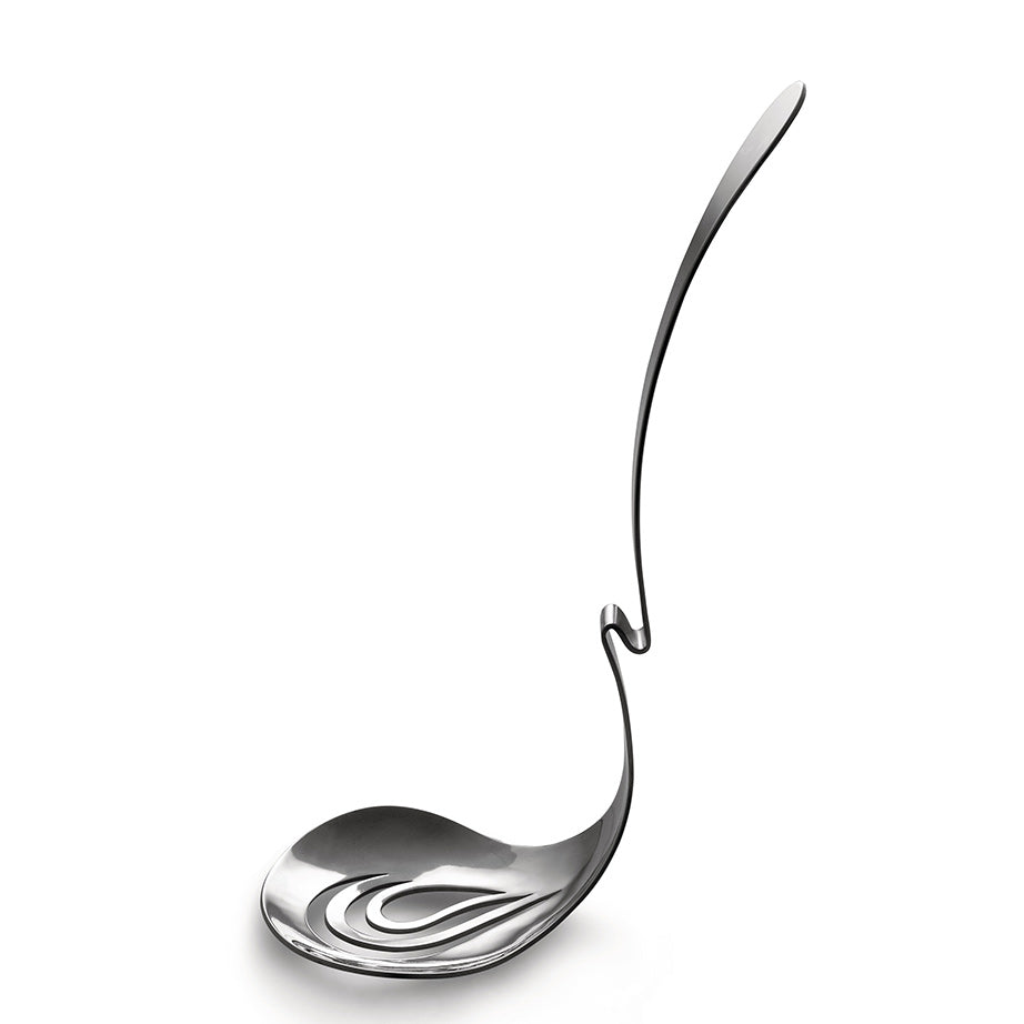 Created by Emma Silvestris for Alessi, Nunziatella is for serving fresh mozzarella. This stunning perforated ladle was designed at the behest of and under the guidance of the Consorzio di Tutela Mozzarella di Bufala Campana DOP, the consortium for producers of one of Italy's finest culinary contributions, Buffalo mozzarella. Designed to be used with the Nunziatella container, the stainless steel perforated ladle will hang off the side of the container and allows you to lift fresh mozzarella from the water to serve.