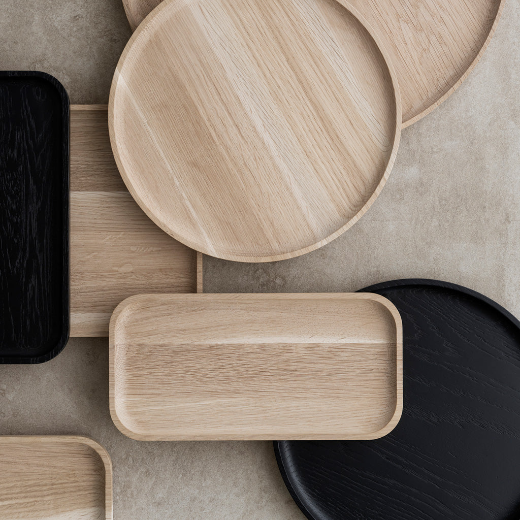 Designed for Blomus by Peter Lienhart, the Oku Trays are versatile and stylish solutions for both serving and decorating. Available in different shapes, sizes, and colours, these FSC certified oak trays are perfect for styling decor objects on a table or serving drinks at your next party.