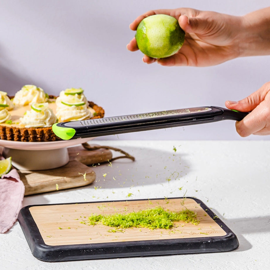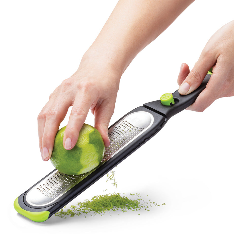 Winner of multiple design awards, the Ozest from Dreamfarm is a concave speed zester that instantly cleans itself with the push of a button. The concave shape of the blade increases contact with your food and guides it down the centre for more efficient zesting. Instantly clean and clear any clinging zest by pushing the button on the handle. A protective blade cover snaps or slides on for worry-free storage, and doubles as a zest catcher.