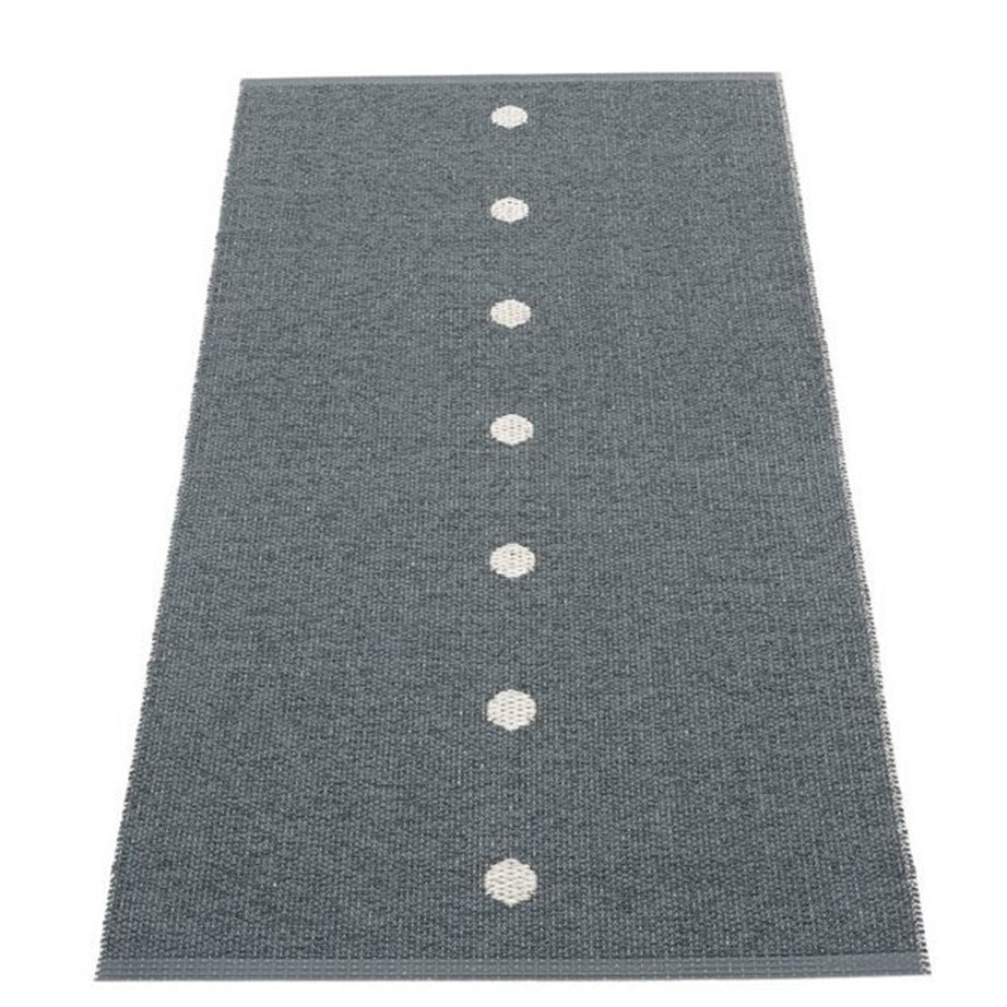 Designed and made in Sweden, Pappelina Rugs are beautiful and sturdy for indoor or outdoor use. The Peg Rugs are made of certified phthalate free PVC ribbon, woven on traditional looms using wooden shuttles. The rugs are reversible, machine washable, and have reinforced and welded edges for added durability.