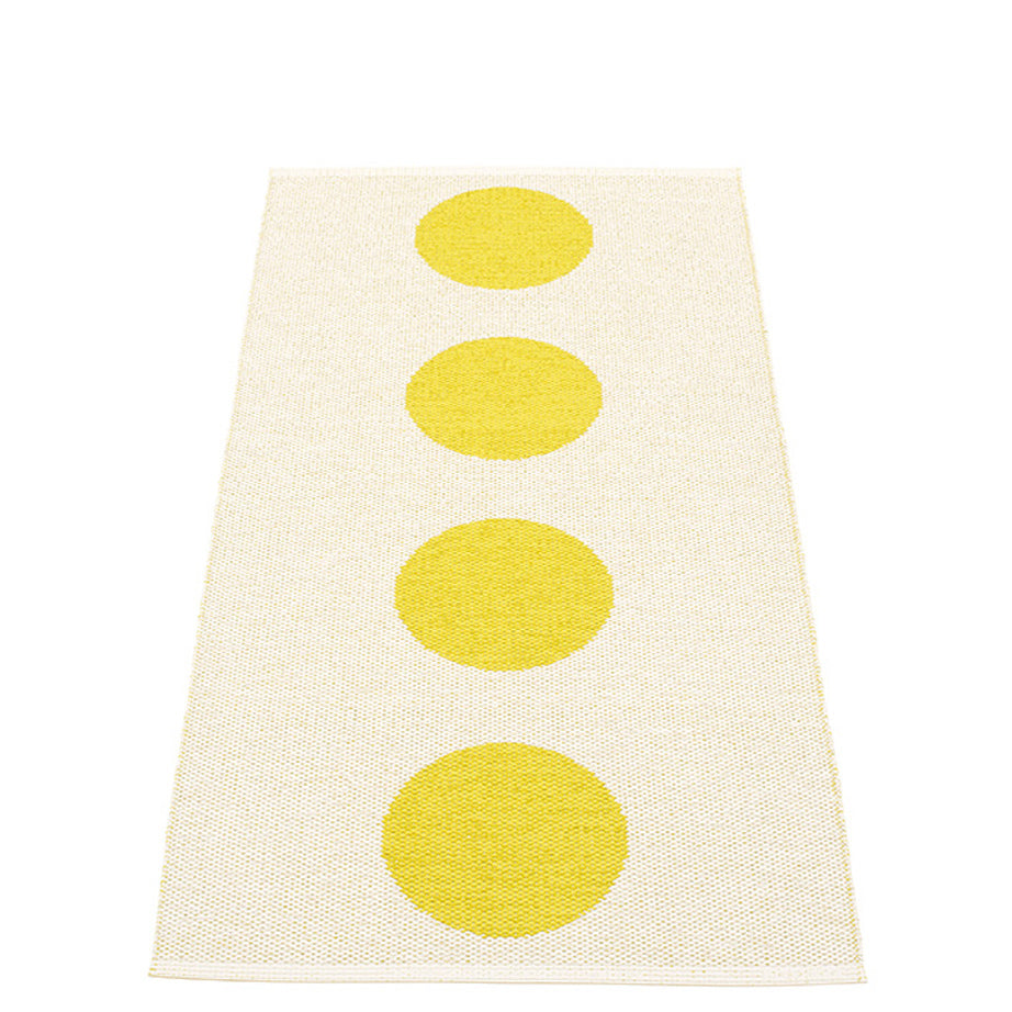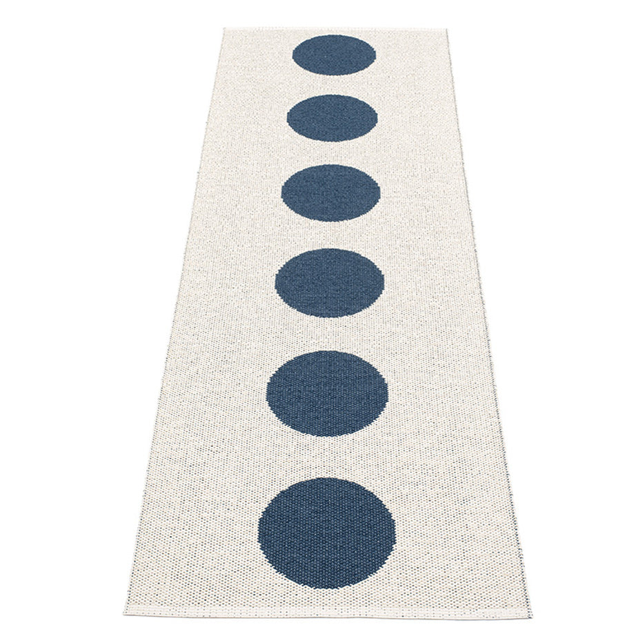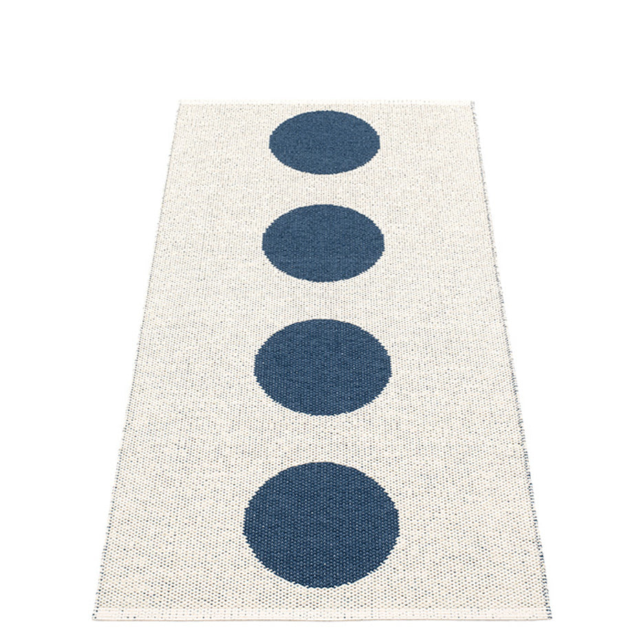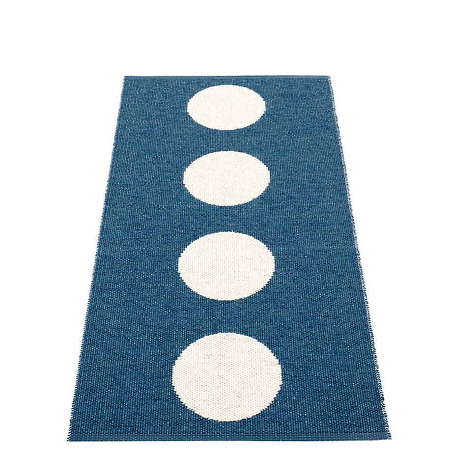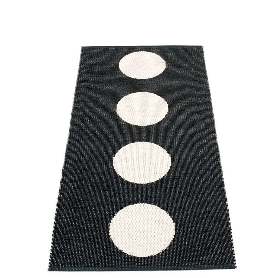 Designed and made in Sweden, Pappelina Rugs are beautiful and sturdy for indoor or outdoor use. The Vera Rugs are made of certified phthalate free PVC ribbon, woven on traditional looms using wooden shuttles. The rugs are reversible, machine washable, and have reinforced and welded edges for added durability.