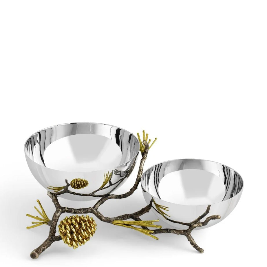 Crafted in his distinctive style, Michael Aram's Pine Cone Bowls are stunning servers for the holiday or any time of year. Part of his Pine Cone Collection, polished stainless steel bowls are elevated on branches and cones in antique gold and bronzed patinas.