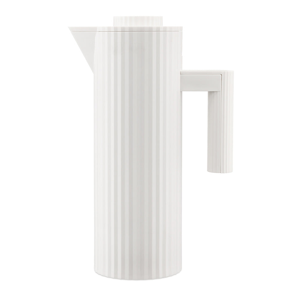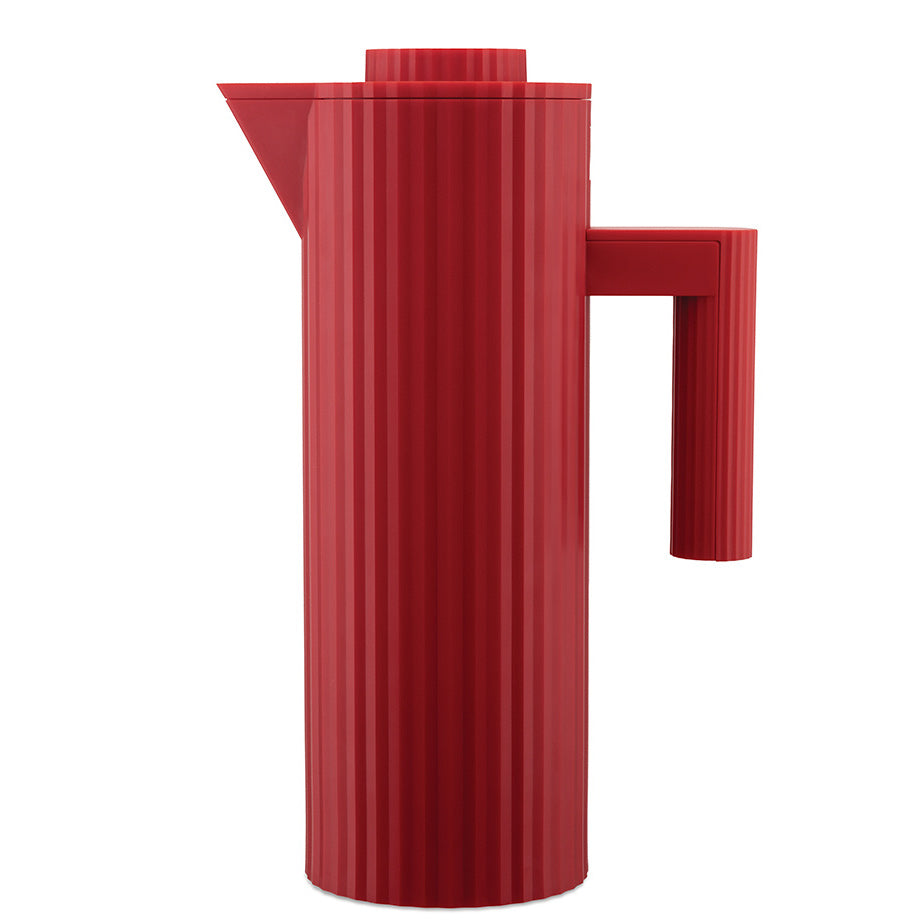 Part of the Plissé Collection designed by Michele De Lucchi's for Alessi, the Plissé Vacuum Jug is couture for your tabletop. Made of thermoplastic resin, the crisp pleats create a lovely play of light and shadows. Lightweight and easy to use, the double-wall thermal glass container inside keeps your beverages warm. The cap has a stainless steel button to open and close to dispense. Plissé is as functional as it is fabulous.